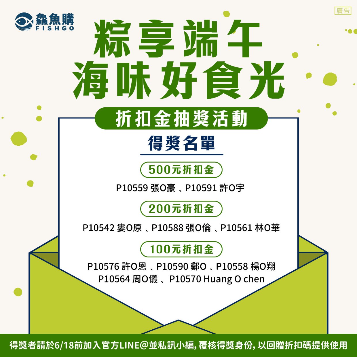 🎉【鱻魚購端午專區|抽獎得獎名單出爐啦!】🎉